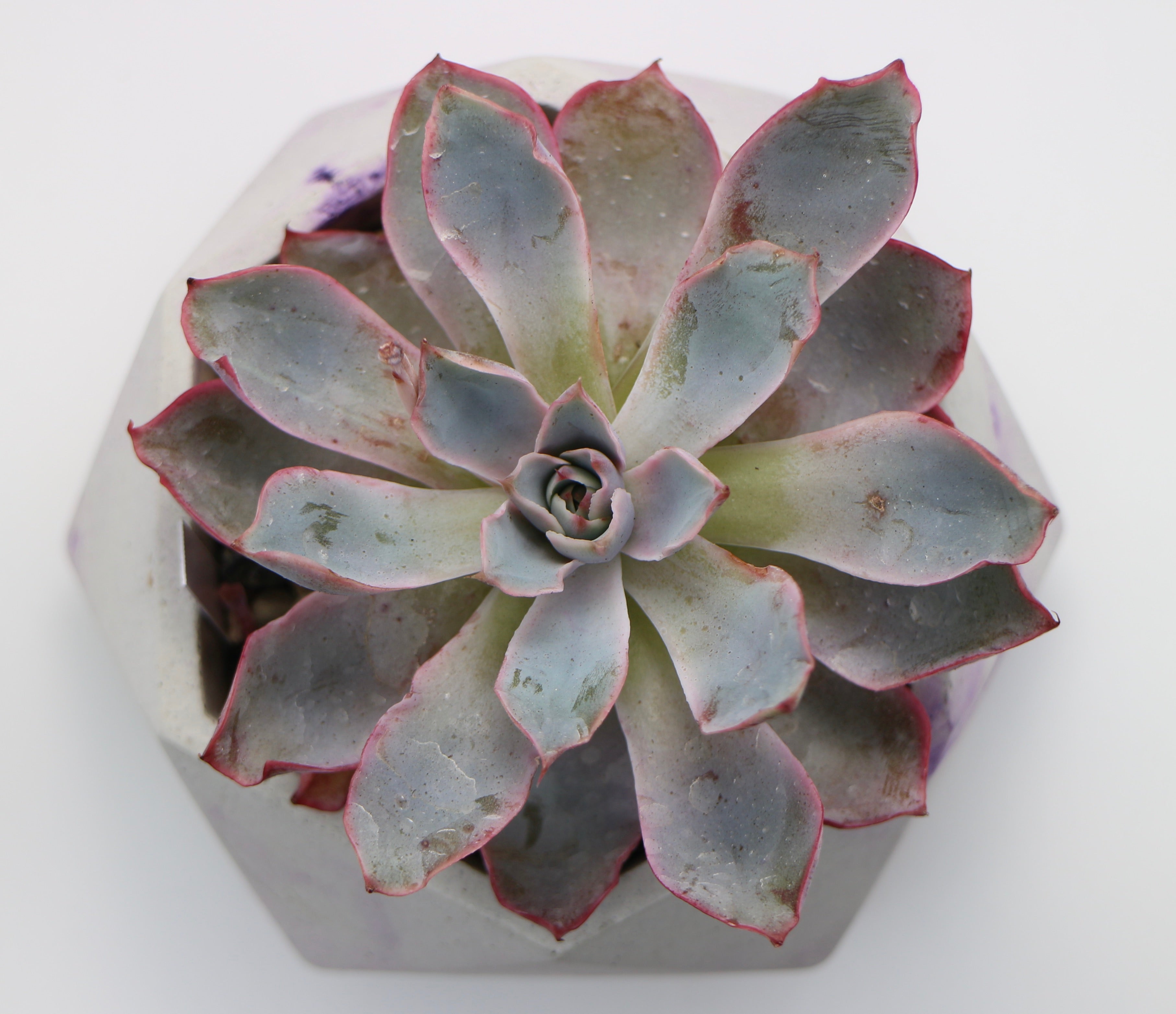 Beautiful, purple marble geometric planter with Korean import succulent: E.Hera