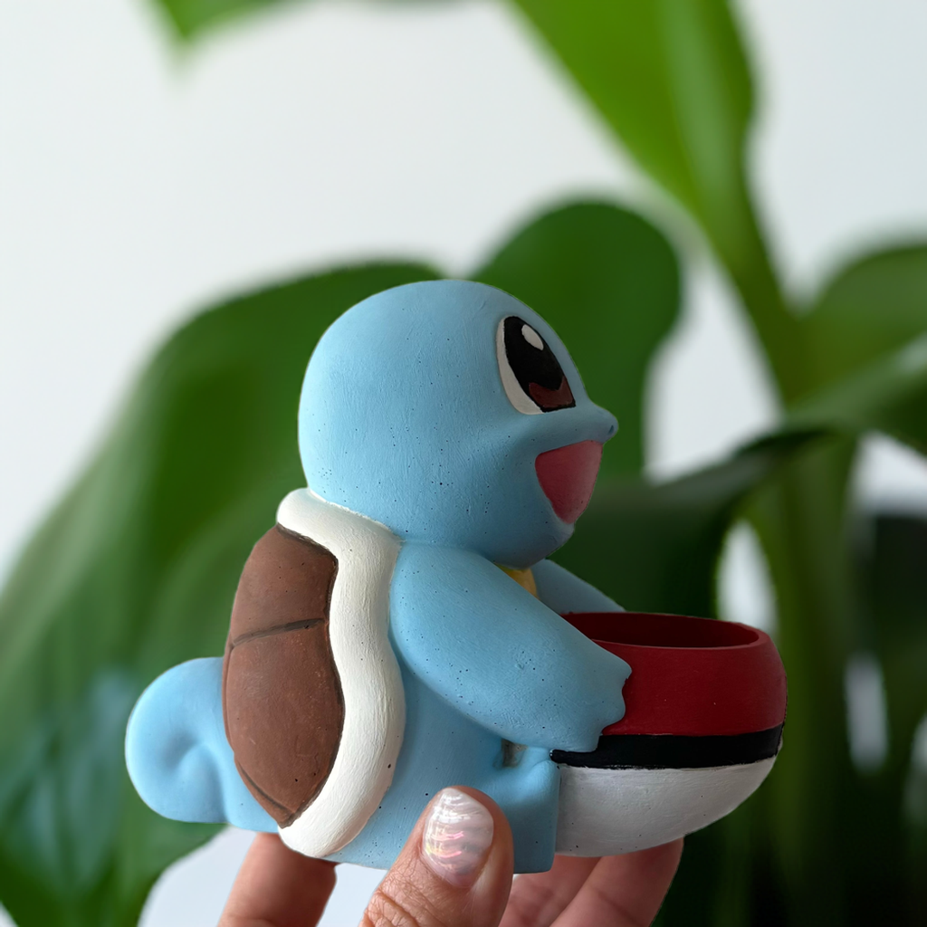 Bring a touch of nostalgia and charm to your home or office with our delightful Squirtel Pokémon Planter. This unique piece is perfect for Pokémon fans and plant enthusiasts alike. All of our planters are equipped with a drainage hole to promote healthy plant growth by preventing waterlogging which can cause root and/or stem rot.